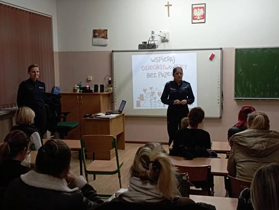 Policjantka ds. nieletnich i patologii wraz z oficer prasową z Komendy Powiatowej Policji w Działdowie uczestniczyły w spotkaniach z rodzicami uczniów na zaproszenie Szkoły Podstawowej w Gródkach i Szkoły Podstawowej nr 1 w Działdowie. Policjantki poruszyły tematykę odpowiedzialności osób nieletnich za popełniane czyny karalne i wspieraniu dzieci przez rodziców i opiekunów w wychowaniu bez przemocy.