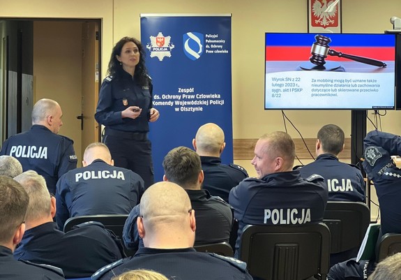 W auli szkoleniowej Oddziału Prewencji Policji w Olsztynie odbył się cykl wykładów pn. "Etyka zawodowa, edukacja i świadomość jako kluczowe narzędzia przeciwdziałania mobbingowi i innym zachowaniom niepożądanym w Policji”. Przedsięwzięcie zostało zrealizowane w ramach lokalnego doskonalenia zawodowego, zgodnie z programem zatwierdzonym przez Komendanta Wojewódzkiego Policji w Olsztynie.