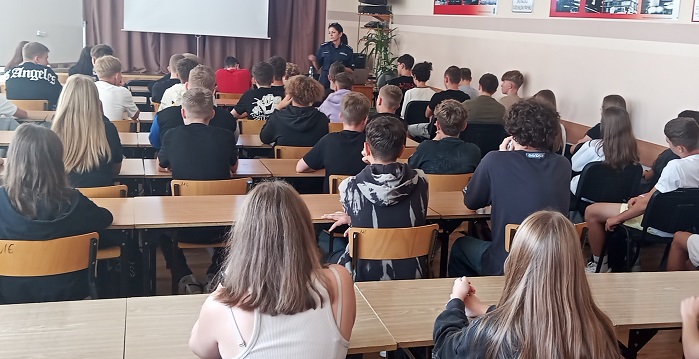 Spotkania policji z młodzieżą to jeden z elementów działalności edukacyjno-profilaktycznej policji. Rozmowy z uczniami szkół ponadpodstawowych mają umocnić w nich właściwe postawy społeczne i uświadomić o ciążącej na nich odpowiedzialności za swoje postępowanie oraz uchronić przed konsekwencjami czynów niezgodnych z literą prawa.