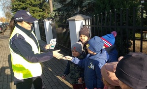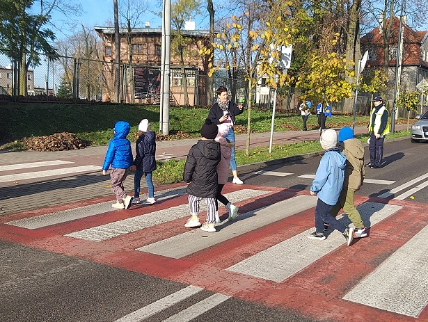 Po części teoretycznej dzieci udały się na przejście dla pieszych, gdzie pod okiem policjantek i w towarzystwie swoich opiekunek przedszkolnych nabytą wiedzę sprawdzały w praktyce podczas przechodzenia na druga stronę jezdni po tzw. zebrze.