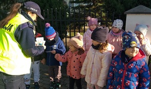 Przedszkolaki z Grunwaldzkiej uczyły się prawidłowego przechodzenia przez jezdnię na przejściu dla pieszych. Nad bezpieczeństwem dzieci czuwały policjantki z Komendy Powiatowej Policji w Działdowie.