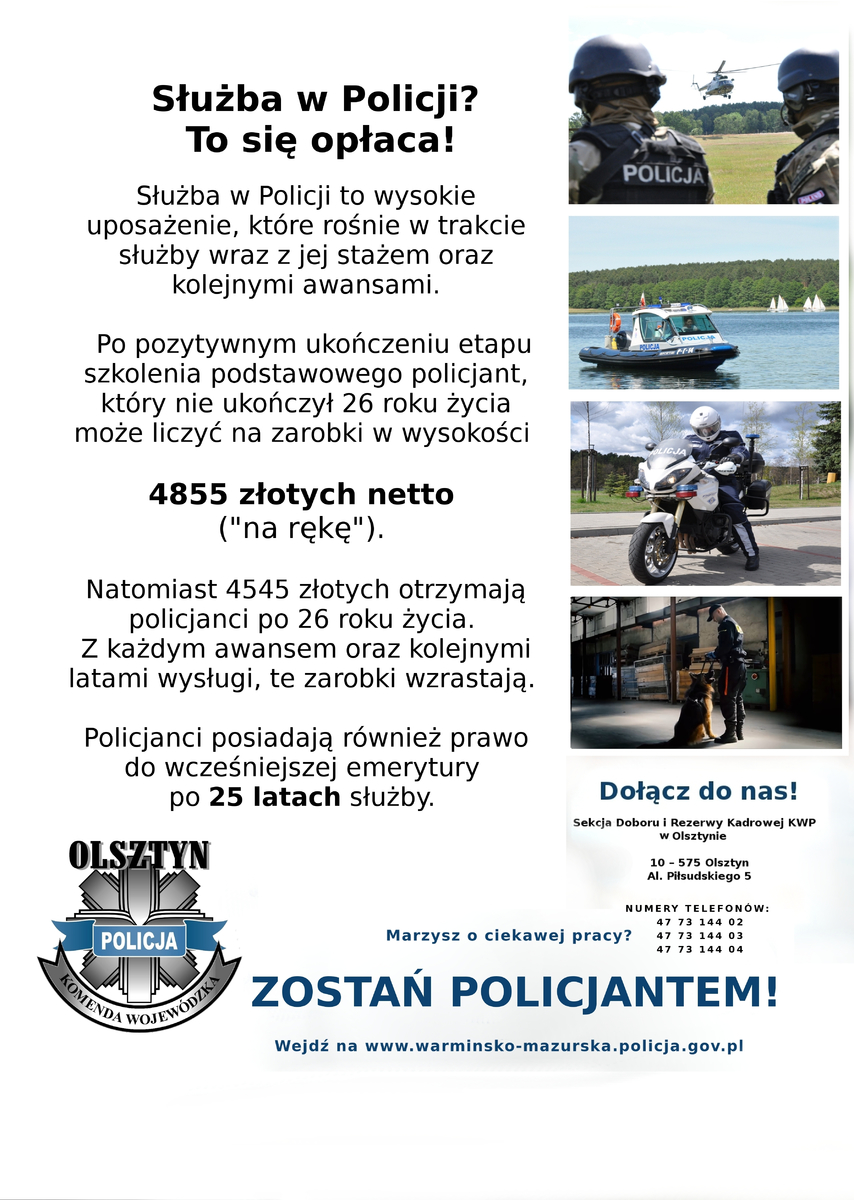 -mazurska.policja.gov.pl) - w siedzibie Sekcji Doboru i Rezerwy Kadrowej Komendy Wojewódzkiej Policji w Olsztynie