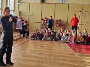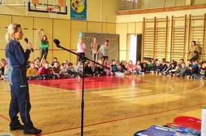 policjantka podczas spotkania z uczniami w SP nr 3 w Działdowie -