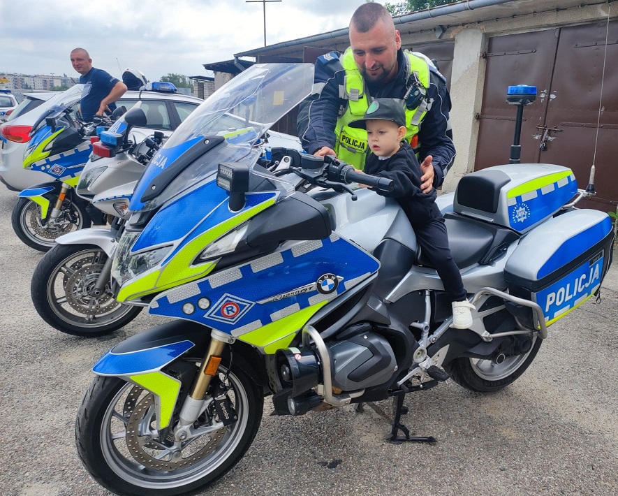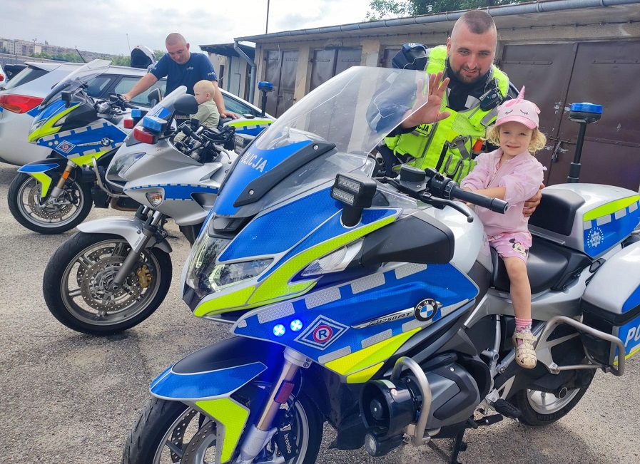W poniedziałek (3.06.2024 r.) Komendę Powiatową Policji w Działdowie odwiedziły dzieci z Przedszkola „U Misia” w Działdowie. Na początek wszyscy uczestnicy spotkania przemaszerowali na plac znajdujący się za budynkiem komendy. Tam maluchy miały możliwość obejrzeć policyjny radiowóz, wsiąść za kierownicę policyjnego motocykla i porozmawiać z funkcjonariuszami ruchu drogowego.