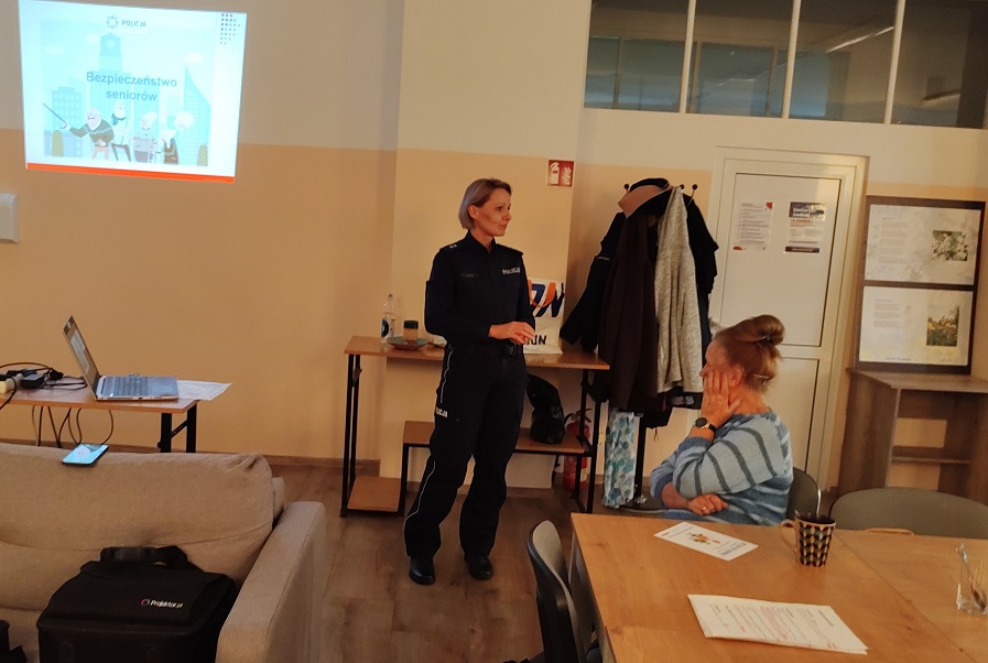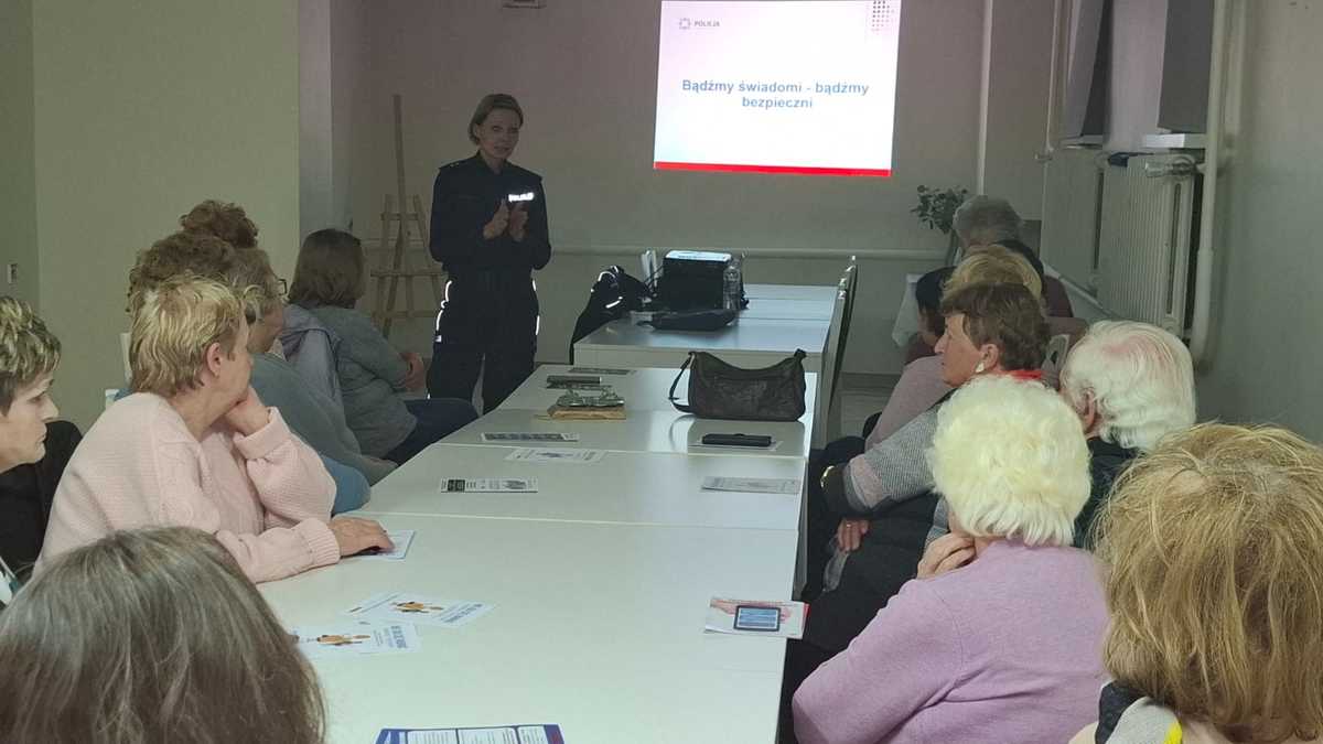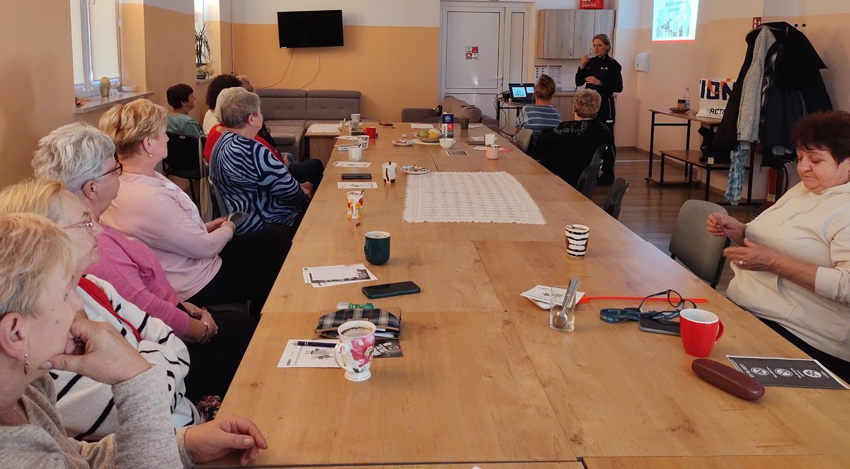 W czwartek (17.10.2024 r.) w ramach Tygodnia Seniora na zaproszenie Dyrektor GCKiB w Płośnicy w Klubach Seniora w Gródkach i w Płośnicy odbyły się spotkania seniorów z gminy Płośnica z policjantkami. Tematem spotkań były zagrożenia w Internecie, oszustwa na wnuczka, policjanta, pracownika banku oraz oszustwa na telefon. Oficer prasowa przestrzegała seniorów przed oszustami podszywającymi się pod znajomych z portali społecznościowych, którzy wysyłają wiadomości z prośbą o wygenerowanie kodu BLIK czy dokonanie przelewu. Zwracała uwagę na różnego rodzaju telefony od osób oferujących szybki zysk poprzez inwestycje w kryptowaluty, akcje znanych firm czy z wykorzystaniem wizerunku znanych polityków i osób publicznych. Apelowała również do seniorów o zachowanie bezpieczeństwa podczas robienia zakupów przez Internet i nieudostępnianie innym swoich wrażliwych danych, danych dostępowych do konta bankowego czy numeru telefonu lub PESEL. Uczulała, by jakąkolwiek prośbę o pieniądze potwierdzić, dzwoniąc do osoby proszącej o wsparcie finansowe, w celu upewnienia się i potwierdzenia, czy to na pewno ta osoba kontaktowała się z nami za pomocą wiadomości w komunikatorze lub podając się za wnuczka, córkę, policjanta i chciała od nas pieniądze. Wskazała na metody działania sprawców, grających na emocjach, wymuszając presję czasu, a nawet przez zastraszenie. Policjantka zwracała również uwagę, by nie ufać osobom, które chcą dołączyć do naszych znajomych na portalach społecznościowych, podając się za amerykańskiego żołnierza, lekarza czy żołnierkę. Kolejnym zagrożeniem, na które wyczulała policjantka seniorów, były wiadomości sms lub e-maile z linkami przekierowującymi na stronę płatności bankowej, w których np. jest informacja z dopłatą do rachunku lub uzupełnieniem adresu do odbioru paczki. Policjantka apelowała, by nie klikać w linki podsyłane z zewnątrz i nie podawać swoich danych logowania i haseł dostępowych do konta bankowego.