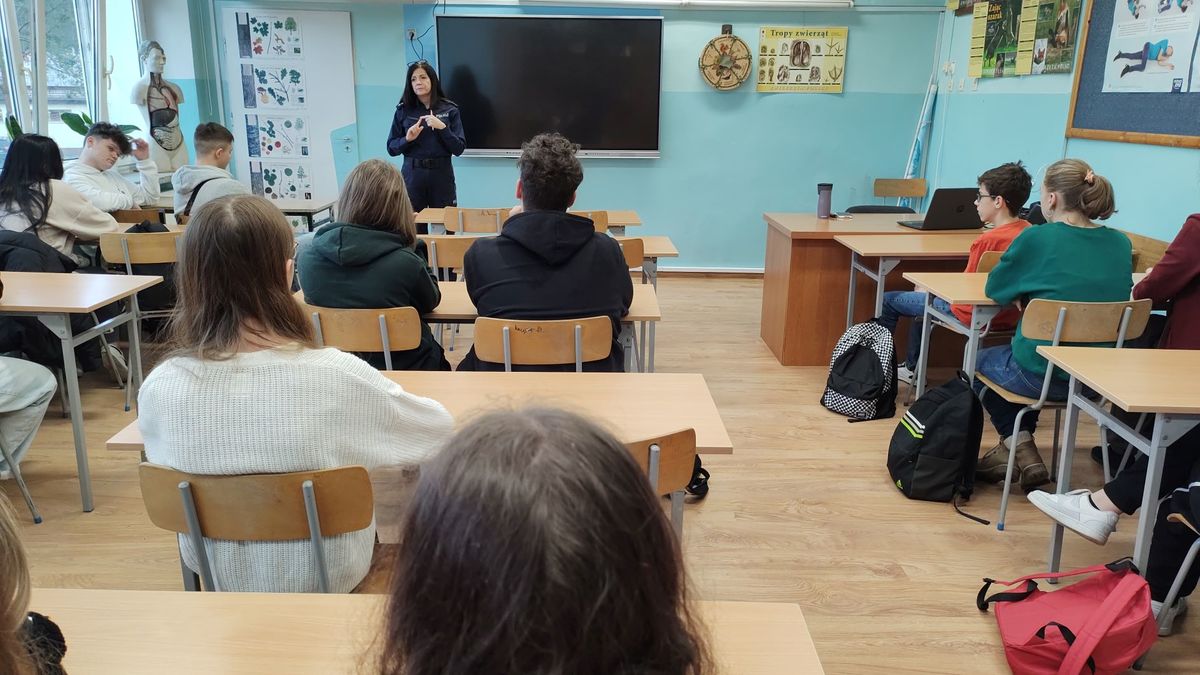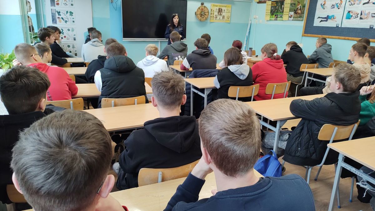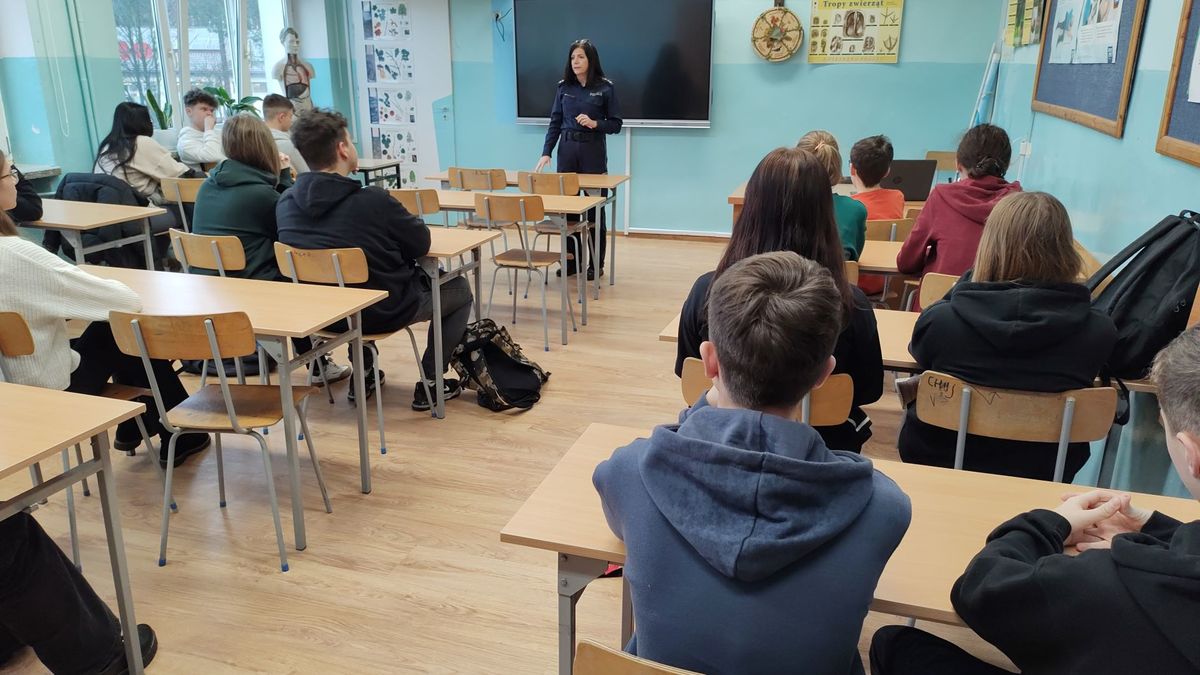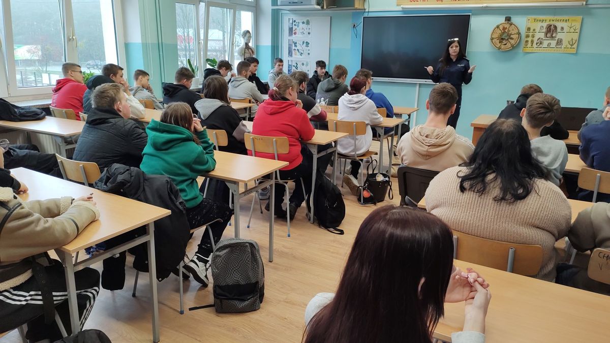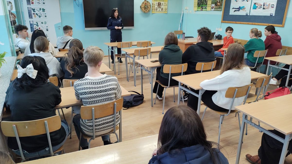 Podczas spotkania z młodzieżą klas I, II i III z Zespołu Szkół w Rybnie policjantki rozmawiały o odpowiedzialności osób nieletnich w świetle obowiązujących przepisów prawa, w tym ustawy o wspieraniu i resocjalizacji nieletnich. Uczestnikom spotkań naświetlono różnice między demoralizacją a czynem karalnym oraz wyjaśniono pojęcie osoby nieletniej występujące w ww. ustawie. Policjantki wskazały na zachowania niezgodne z prawem i najczęściej popełniane przez nieletnich czyny karalne. Młodzież dowiedziała się również, jaka odpowiedzialność grozi za nieprzestrzeganie prawa oraz jakie środki wychowawcze i poprawcze są stosowane przez sąd wobec osób nieletnich. Funkcjonariuszki apelowały o szczególną ostrożność podczas korzystania z portali społecznościowych i komunikatorów internetowych, a zwłaszcza podczas wrzucania różnego rodzaju zdjęć, filmików czy treści, które trafiają do szerokiego grona odbiorców, a na których mogą znajdować się inne osoby. Policjantki zwracały uwagę młodzieży, by reagowała na przemoc wokół siebie i nie bała się mówić o niej głośno.
