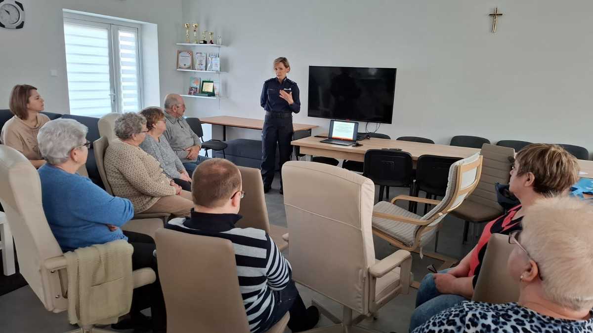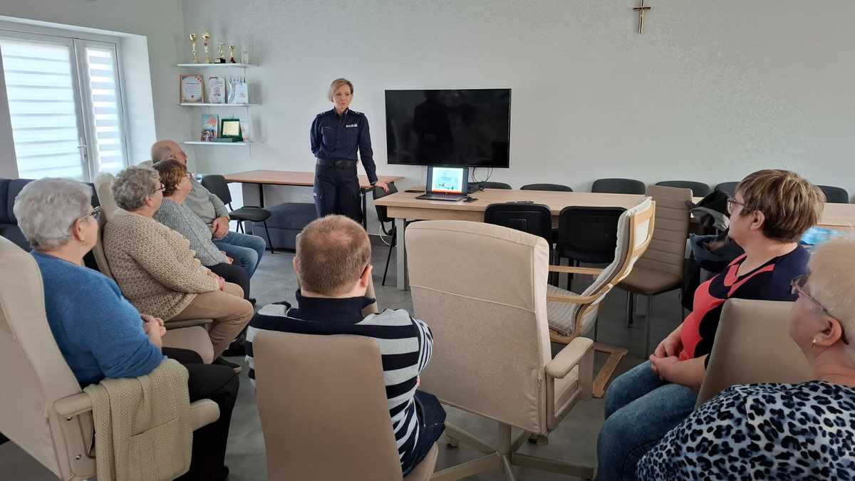 W Dniu Babci (21.01.2025 r.) policjantki z Komendy Powiatowej Policji w Działdowie gościły w Klubie Seniora w Wawrowie. Tematem przewodnim spotkania z seniorami były oszustwa „na wnuczka”, „na policjanta”, „na pracownika banku”, na wyłudzenia pieniędzy z wykorzystaniem kodów Blik, linków odsyłających do stron płatności banku czy oszustwa na inwestycje w kryptowaluty, akcje i obligacje znanych firm, w tym przy wykorzystaniu wizerunku znanych osób publicznych. Oficer prasowa uczulała seniorów na wiadomości od osób podających się za członków rodziny lub znajomych z internetowych portali społecznościowych, w których zwracają się z prośbą o przelanie pieniędzy lub wygenerowanie i podanie kodu do płatności, celem zapłaty np. za rzekomo robione zakupy. Uczestnicy spotkania byli również uwrażliwiani na przychodzące smsy z dopłatą do rachunku np. za paczkę, za gaz, za energię, które zawierają linki, odsyłające do stron płatności bankowych, by nie klikali lików i nie podawali swoich wrażliwych danych logowania i hasła dostępowego do konta. Inny rodzaj oszustw, o których mówiła policjantka to tzw. oszustwa nigeryjskie, gdzie osoby podając się za np. amerykańskiego lekarza lub żołnierza, wysyłają zaproszenie na portalach społecznościowych z prośbą o dodanie ich do grona znajomych. Następnie nawiązują znajomość z osobą, która zaakceptuje zaproszenie i gdy zyskają jej zaufanie, informują o wysłaniu paczki „z drogocennymi rzeczami” i proszą o opłacenie kosztów przesyłki, które finalnie okazują się bardzo duże, a osoba dokonująca wpłat za transfer paczki, zostaje oszukana i traci swoje pieniądze. Oficer prasowa wspomniała również seniorom o możliwości zastrzeżenia swojego numeru PESEL w celu ochrony przed wyłudzeniem kredytu czy pożyczki na ich dane.