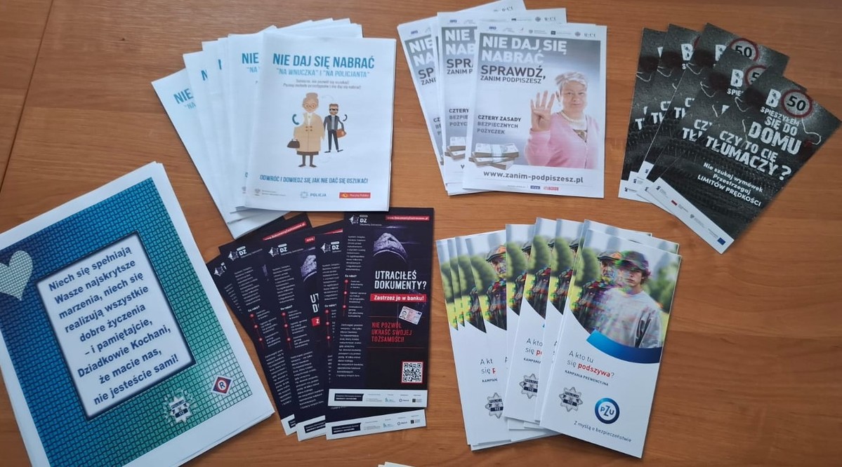 Składając seniorom życzenia z okazji Dnia Babci i Dziadka, funkcjonariuszka apelowała o bezpieczeństwo w ruchu drogowym, przestrzeganie przepisów, zarówno w roli pieszego, jak i kierowcy pojazdu i dbanie o swoje zdrowie. Seniorom przekazano broszury i ulotki dotyczące możliwych zagrożeń ze strony oszustów oraz sposobów chronienia się przed oszustwami.