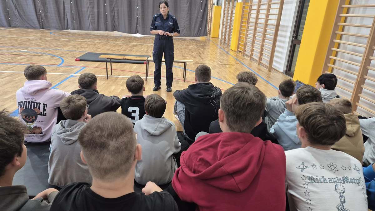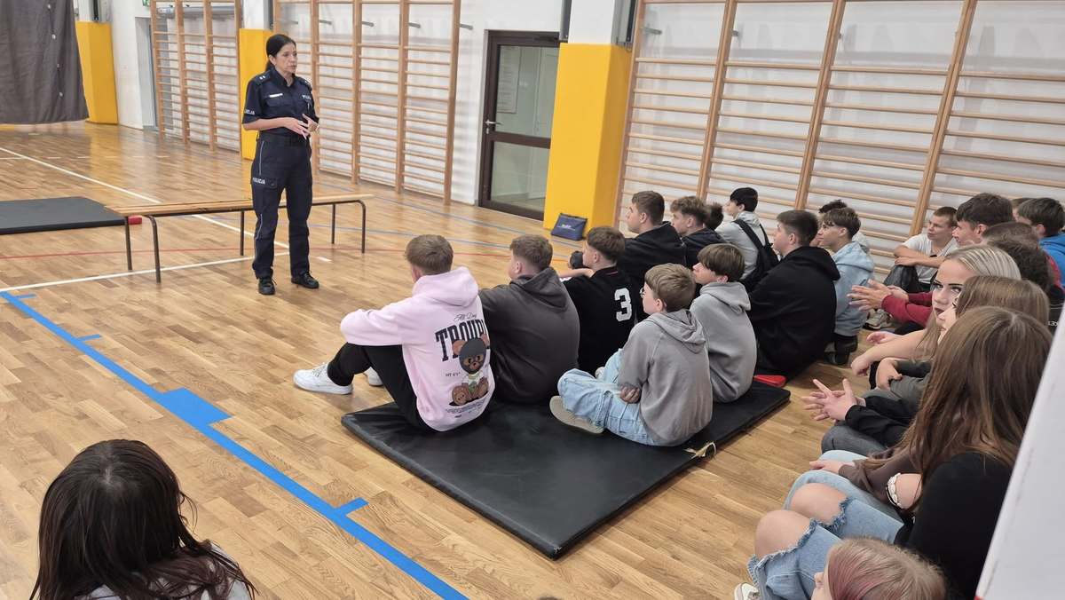 Spotkanie policjantek z młodzieżą i dzielnicowych z uczniami podstawówki