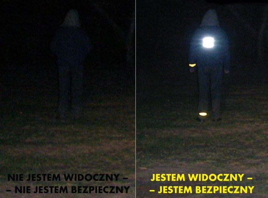 Pieszych natomiast zachęcamy do korzystania z elementów odblaskowych, które podczas jesiennej szarugi mają szczególne znaczenie dla ich bezpieczeństwa. To jak najbardziej dobry zwyczaj, który sprawi, że jesteśmy bardziej widoczni. Elementy odblaskowe powinny być umieszczone w takim miejscu, by znalazły się w polu działania świateł samochodowych i były zauważalne dla kierujących nadjeżdżających z obu kierunków (z tylu i z przodu). Światła pojazdu, który zbliża się do pieszego, najpierw oświetlają dół sylwetki pieszego, zatem odblaski dobrze jest zakładać jak najniżej. Piesi muszą również pamiętać, że idąc po poboczu lub po jezdni obowiązani są iść lewą stroną drogi – to podstawowa zasada bezpieczeństwa na drodze!