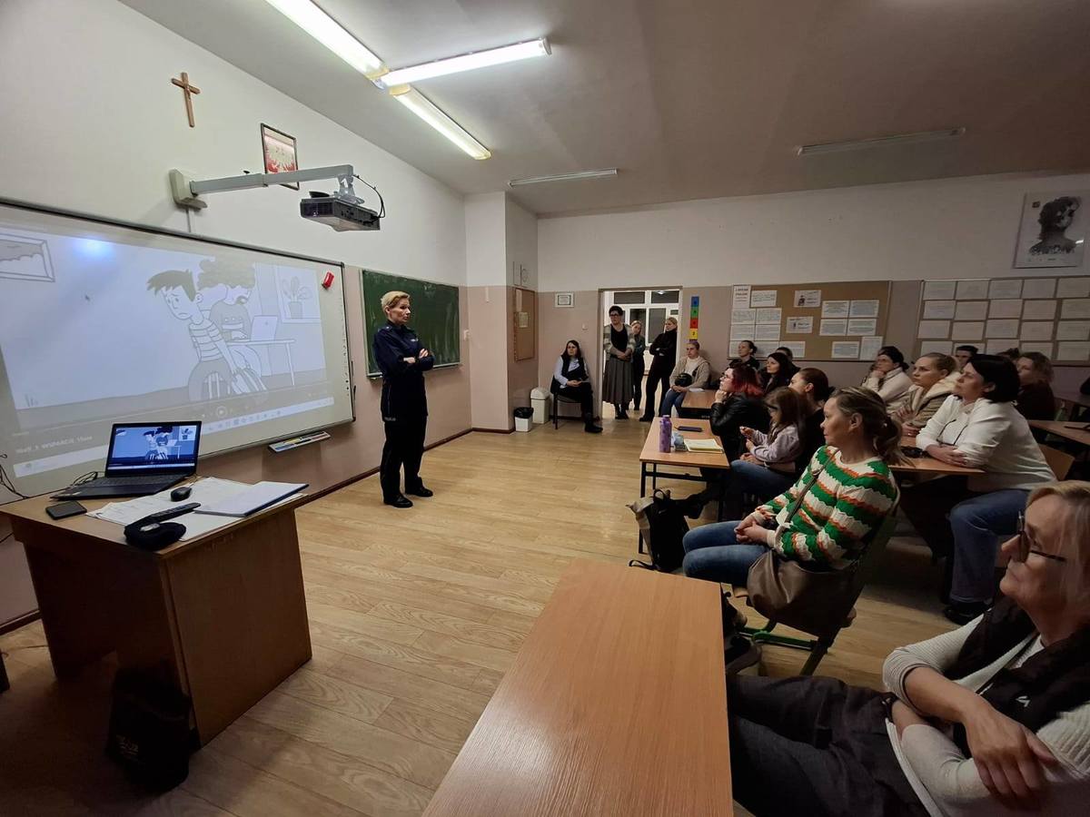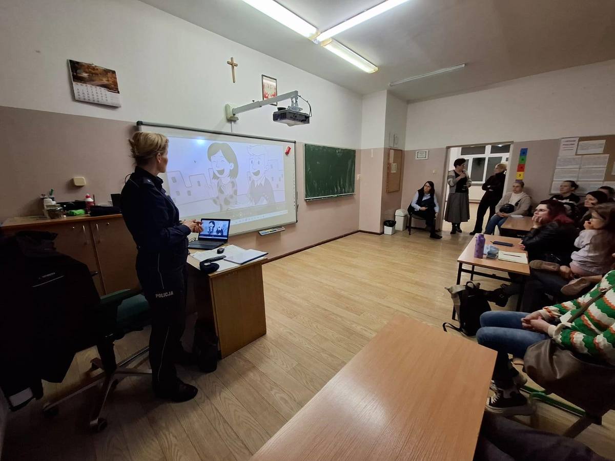 Rodzice uczniów Szkół Podstawowych w Gródkach i Szkoły Podstawowej nr 1 im. Króla Władysława Jagiełły w Działdowie uczestniczyli w spotkaniach z policjantkami z Komendy Powiatowej Policji w Działdowie. Spotkania miały miejsce we wtorek (18.11.2025 r.) i w środę (19.11.2025 r.). Tematyka spotkań obejmowała odpowiedzialność osób nieletnich w świetle obowiązujących przepisów, hejt i przeciwdziałanie przemocy w ramach kampanii "Dzieciństwo bez przemocy". Policjantka ds. nieletnich zwróciła uwagę na czyny karalne najczęsciej popełniane przez osoby nieletnie i apelowała o kontrolowanie udostępniania dzieciom hulajnóg elektrycznych zgodnie z przepisami ruchu drogowewgo. Uczestnikom spotkań zwrócono uwagę na zachowania dzieci i młodzieży w sieci i rozmawiania z nimi o zagrożeniach z tym związanych. Oficer prasowa przedstawiła założenia kampanii "Dzieciństwo bez przemocy". Zwróciła uwagę na rolę rodziców i opiekunów w wychowaniu swoich pociech i rozmawianiu ze swoimi dziećmi dając im poczucie, że są ważne i że zawsze będą przez nich wysłuchane. Funkcjonariuszka apelowała o zainteresowanie swoimi dziećmi, ich problemami z uwagą na szkodliwe treści płynące z socialmediów i internetu, które również mogą mieć negatywne skutki w relacjach ich dzieci z rówieśnikami w szkole. Rodzice obejrzeli spoty "Obecność", "Docenianie" i "Wsparcie".
