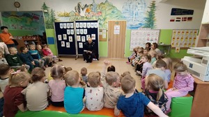 Przedszkole Miejskie w Lidzbarku miało przyjemność gościć dzielnicową z Komisariatu Policji w Lidzbarku. Powodem wizyty dzielnicowej było spotkanie z dziećmi na temat "Bezpiecznych ferii zimowych".