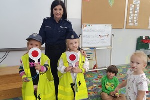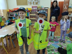 Przedszkolaki z Kisin gościły u siebie działdowskie policjantki. Podczas spotkania funkcjonariuszki przekazały dzieciom odblaskowe opaski i odznaki „małego policjanta”.